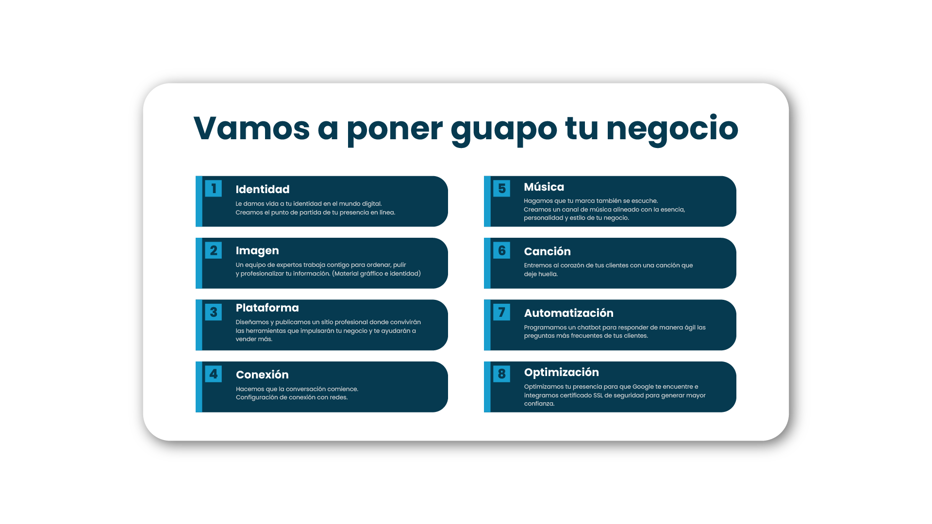 Por eso necesito que todo esté unido en un solo lugar: mi música, mis redes, mi sitio, mi WhatsApp, mi chatbot y una imagen que haga que mi negocio se vea tan especial como realmente es.